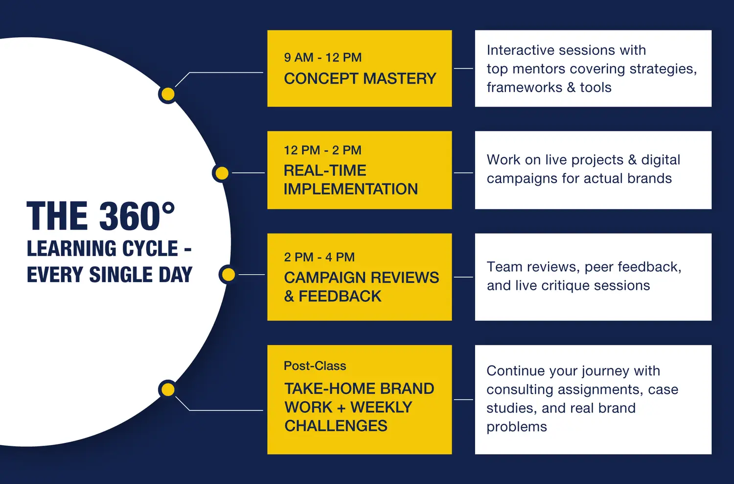 This program is not just about lectures or textbooks. It’s about building high-performance marketers who can lead campaigns, manage brands, drive ROI, and thrive in agency and startup environments.